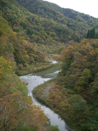 磐梯吾妻の素晴らしい紅葉を眺めて帰りましたが、ならば、私が自慢する新緑、紅葉のスポットは?と午前中胎内に行ってきました。 写真の通り、もうちょいでした。 例年より紅が少ないなと思いましたが・・・。 でも自然の力はすごいですね。