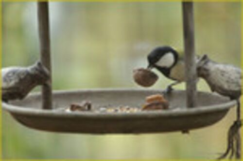 数年前、落花生を取り付けた時(今のように縦ではなく横にネックレスのように)しばらくして食べに来たのは シジュウカラ でした。 それを横目で見ながら雀が来ましたが中々うまくとまれないのです。 落花生は細い針金でつないであるのですが、重さが加わる…