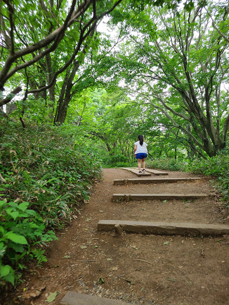 弥彦山は東京スカイツリーと同じ634m。登山道で高齢の女性と一緒になり、間もなく登山道がアジサイでいっぱいになること、食べられる植物など教えていただいたそうです。