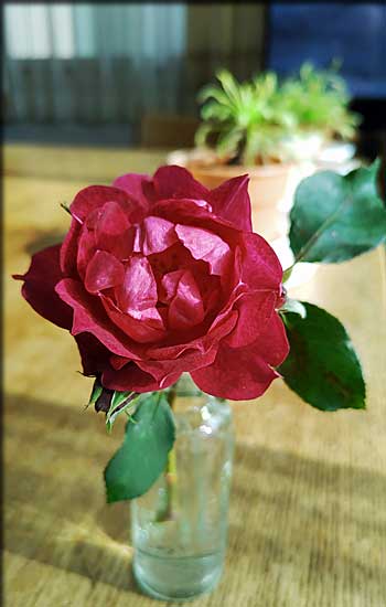 庭に出てバラを切って部屋に飾りました。