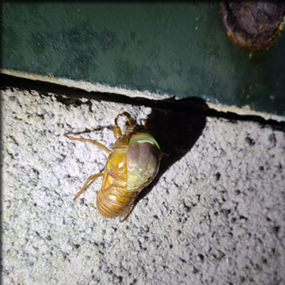 2023-07-27 最終更新日 2023-07-28 夜遊び? 娘とR 羽化 孫のRは二年前の夏休みの宿題にセミの抜け殻を使った公園を作りました。 そして、娘は蝉の羽化をRに見せたいとずーっと思っていて、昨日は早めに帰ってきました。7時半に出発・・・弥彦神社へ。(車で40分ほど)暗くなっても気温はさほど下がらず、夜間に二人は少々心配でしたが、 10時前に帰ってきてほっとしました。 背中が割れて羽化の始まり(神社の灯篭) 右は 家の干物作りのネットの中で羽化 自分の目で確かめるのが一番ですね。